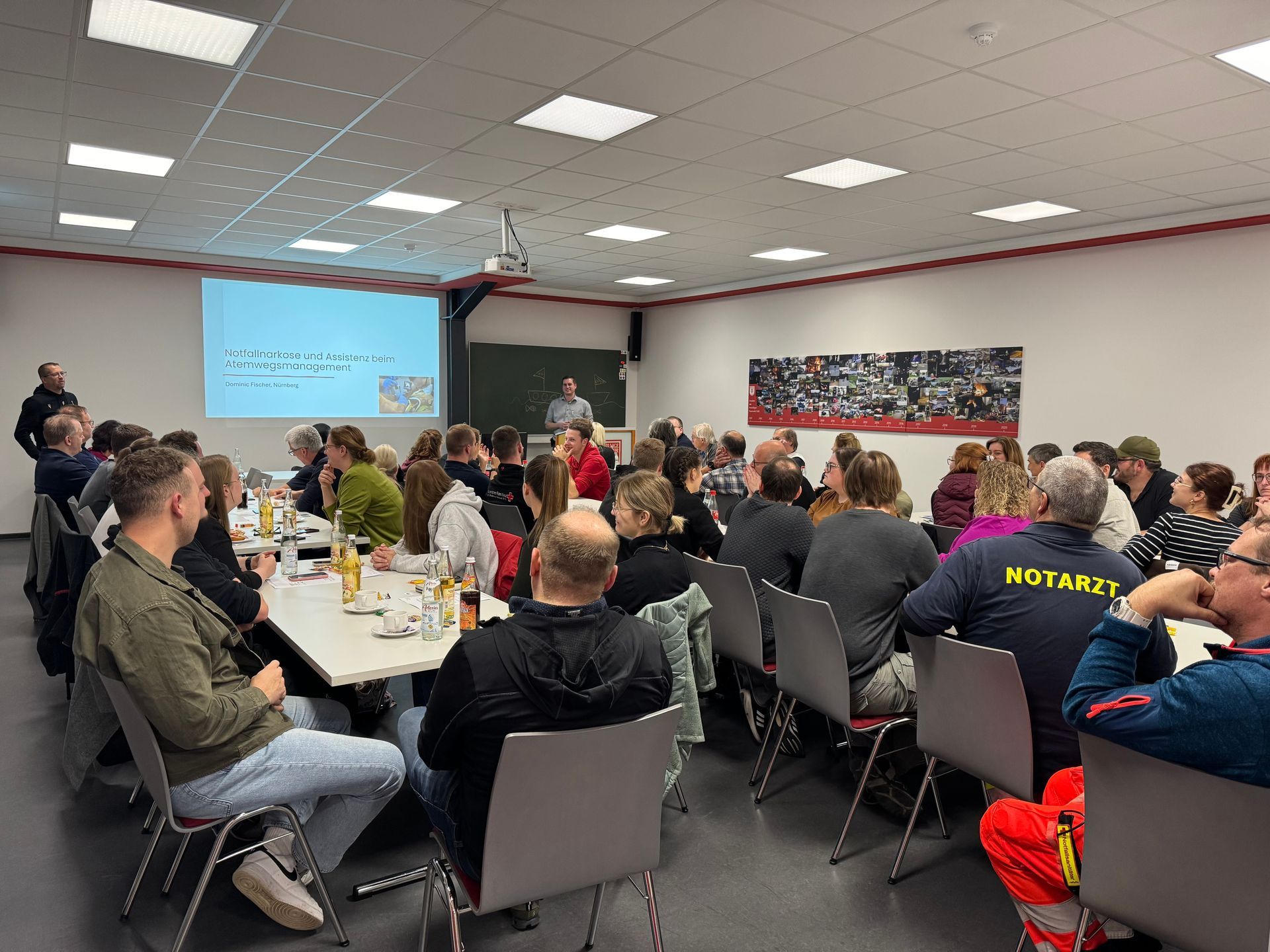 Vergangenen Mittwoch war ein spannender Abend für die rund 70 Teilnehmer: Referent Dominic Fischer (HEMS-TC) gab wertvolle Einblicke in die Notfallnarkose im Rettungsdienst und deren sichere Durchführung. Nach einem fesselnden Vortrag hatten die Teilnehmenden die Möglichkeit, ihr Wissen an vier Praxisstationen aufzufrischen.
