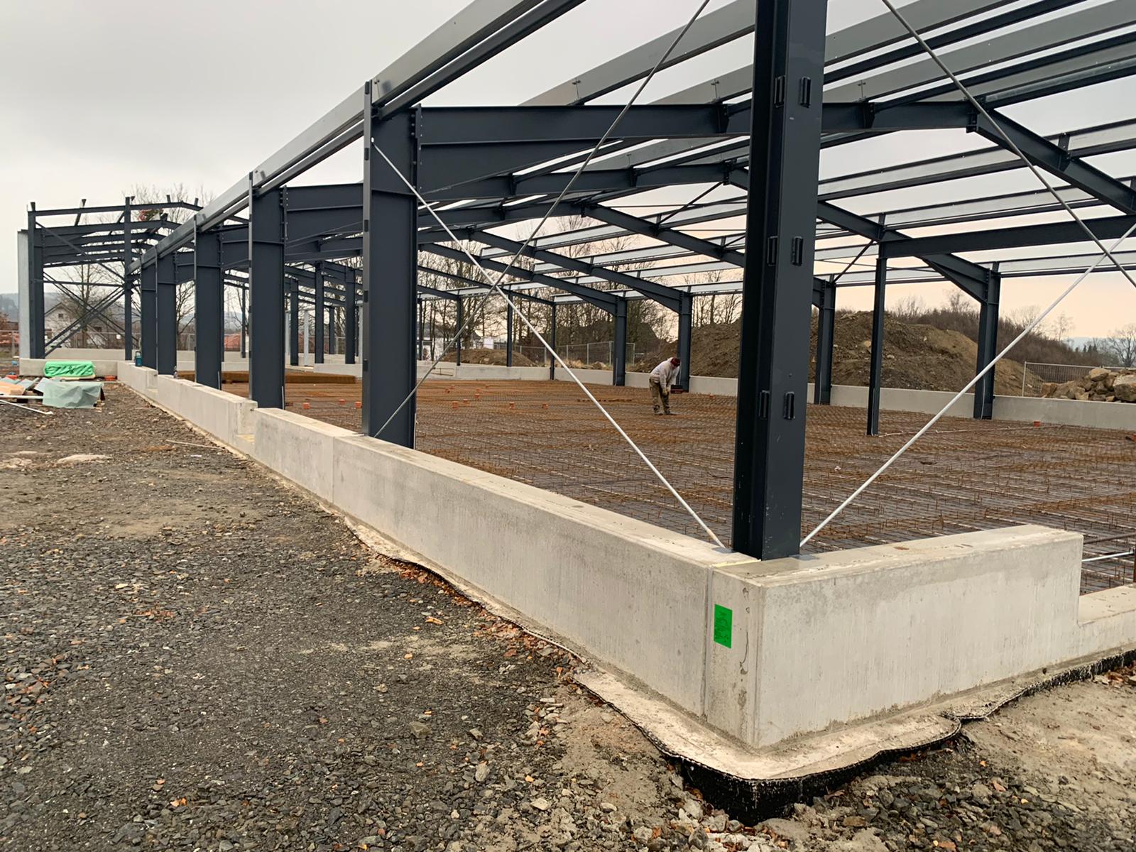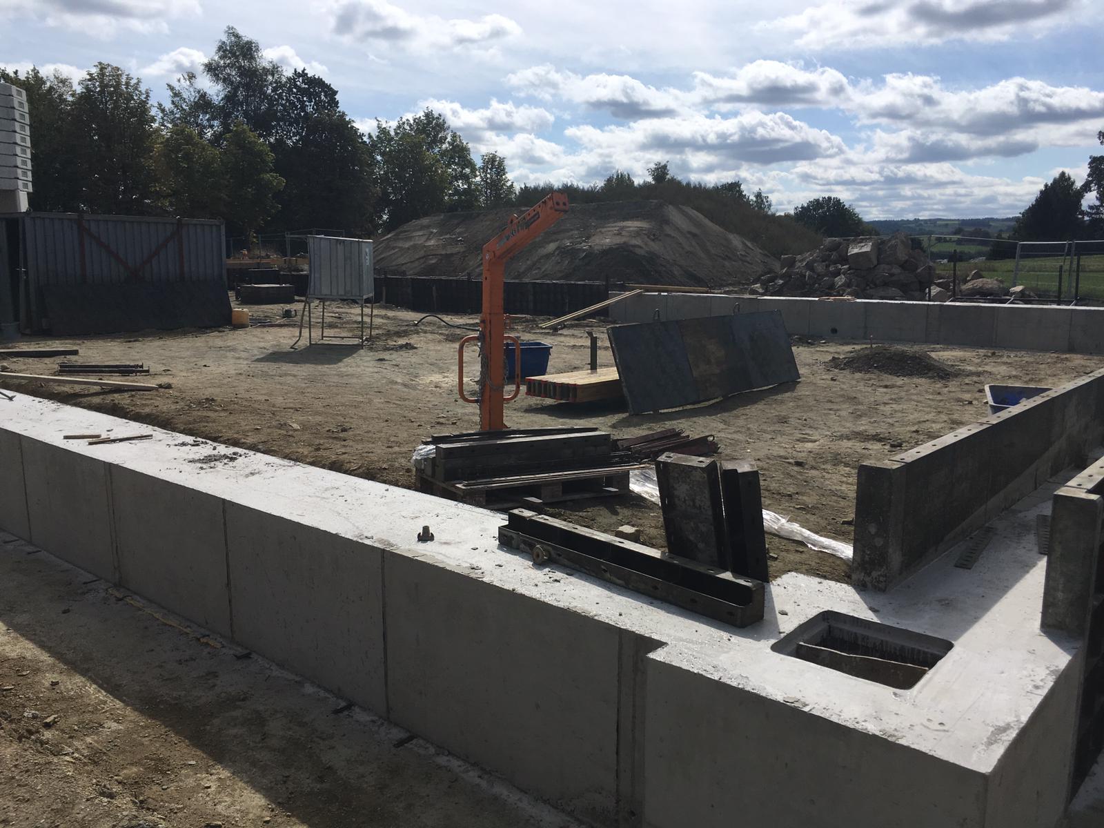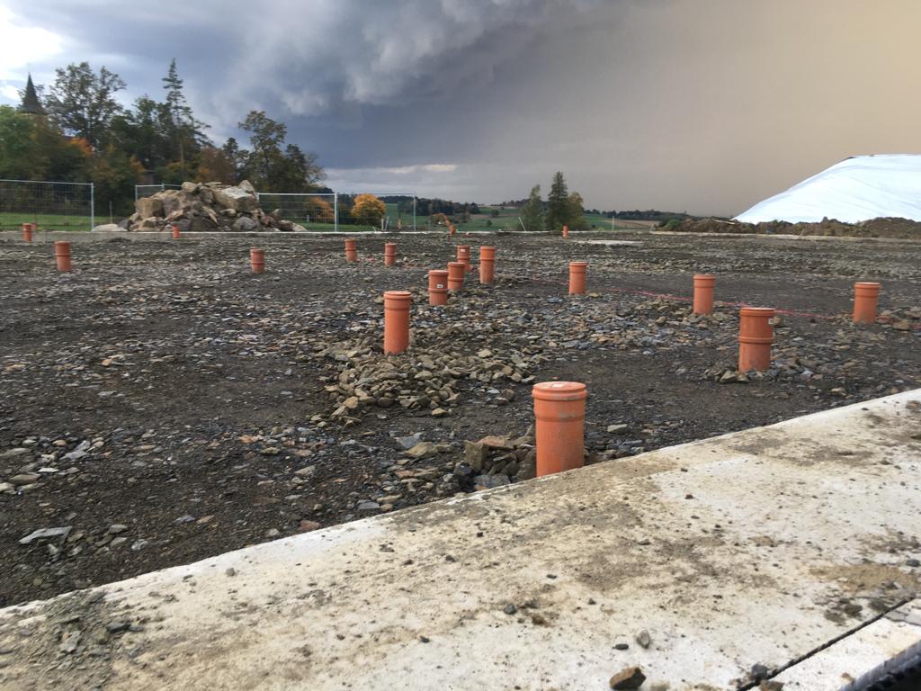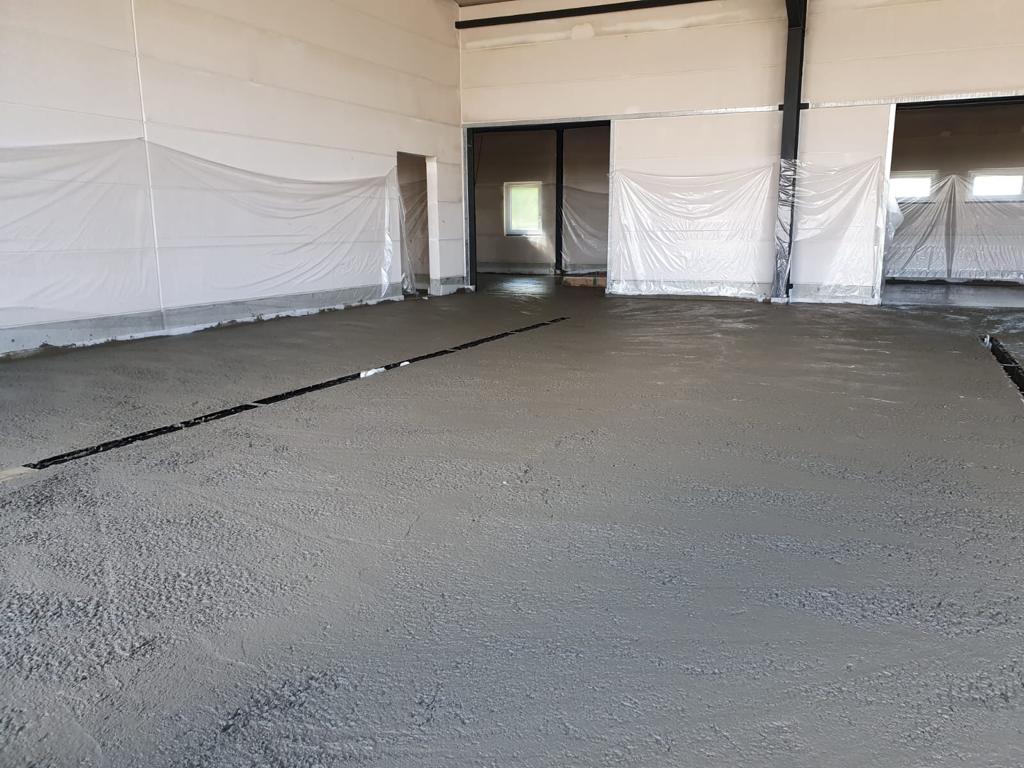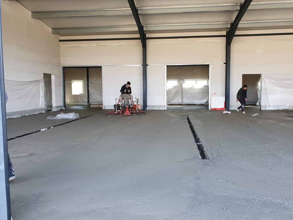 ➡️ Mit der Bodenplatte in der Fahrzeughalle wurde begonnen.