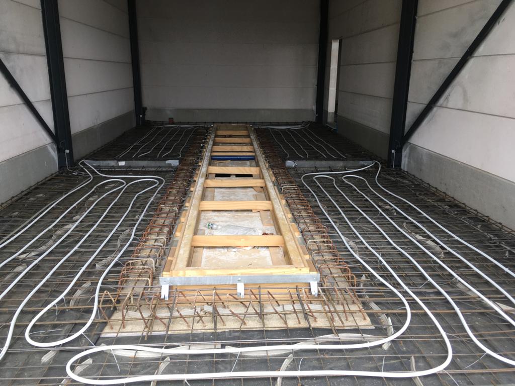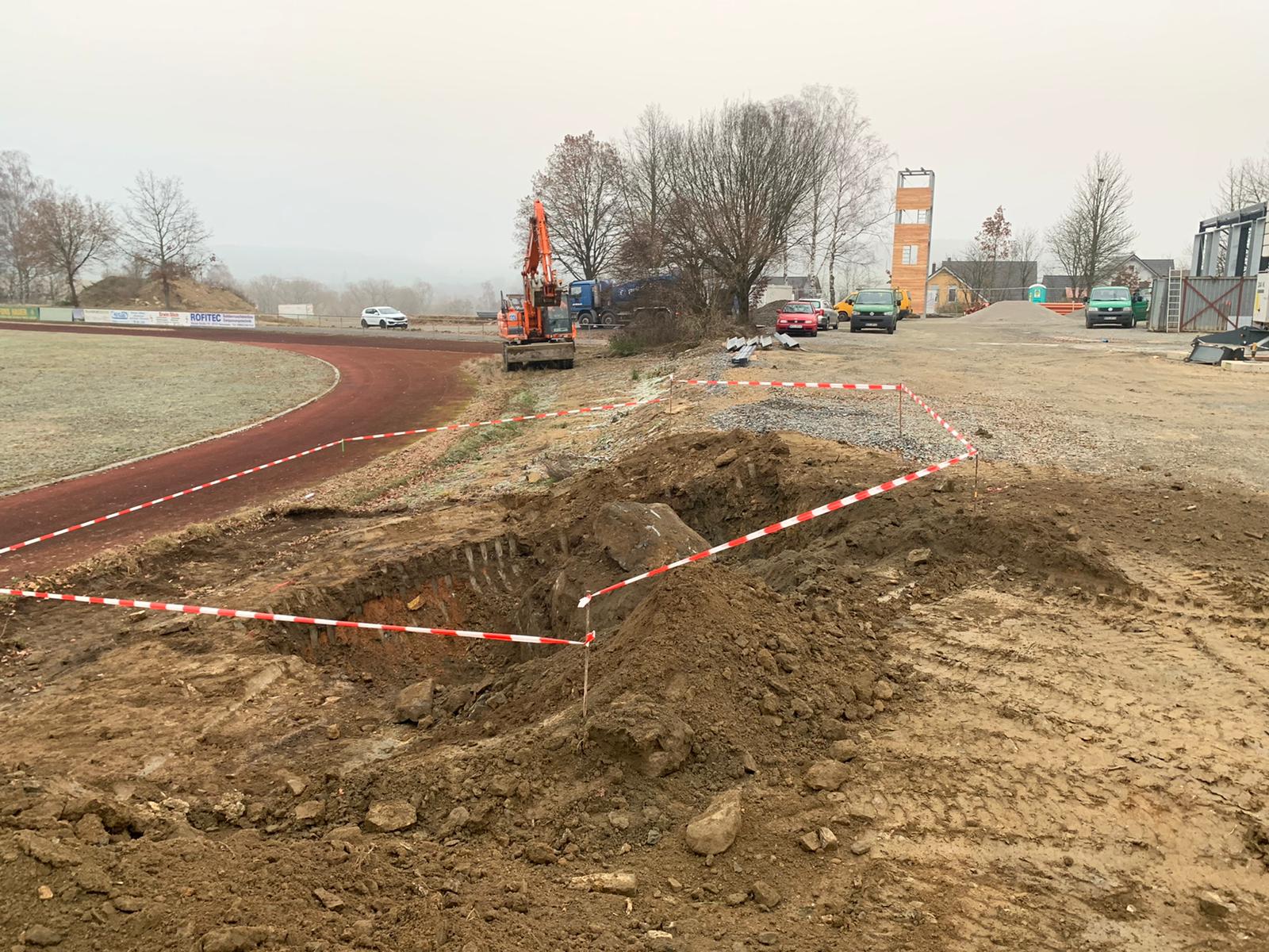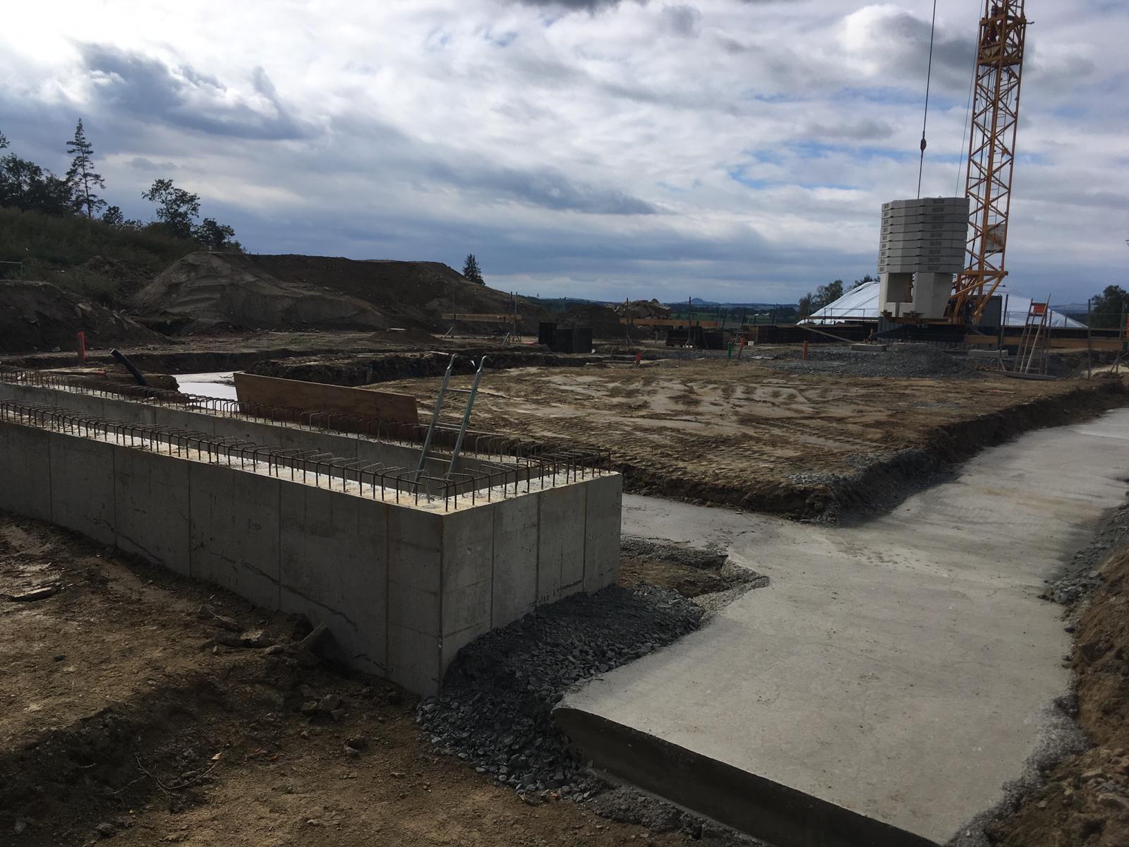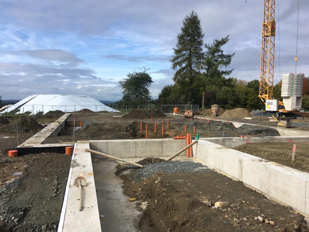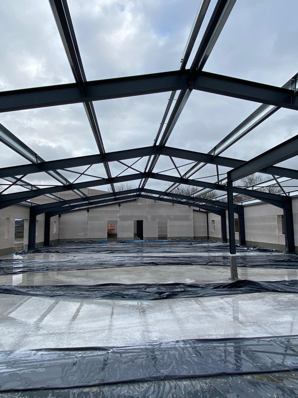 ➡️ Mit der Bodenplatte in der Fahrzeughalle wurde begonnen.