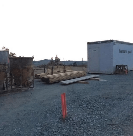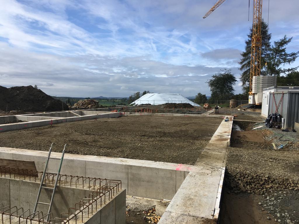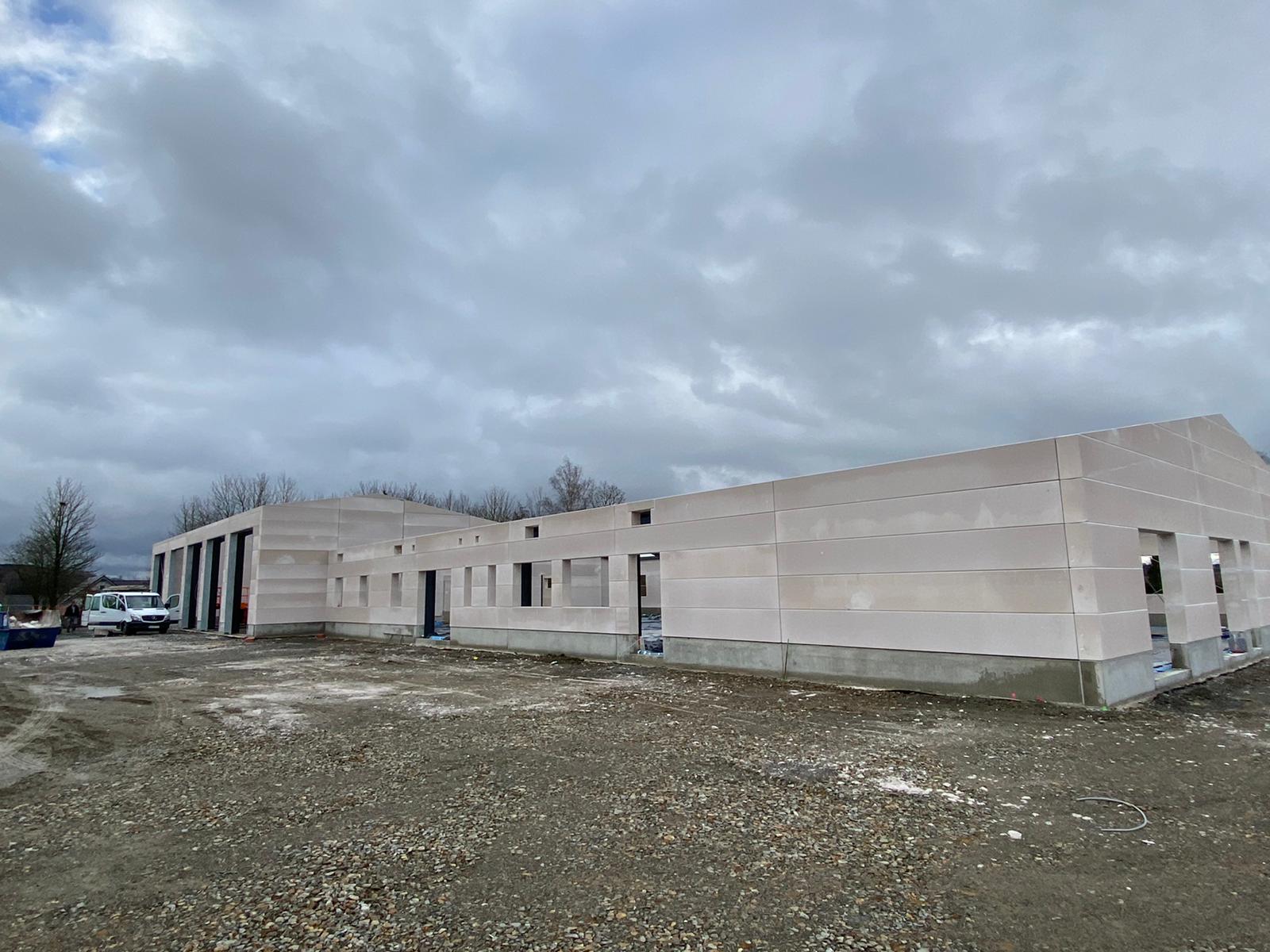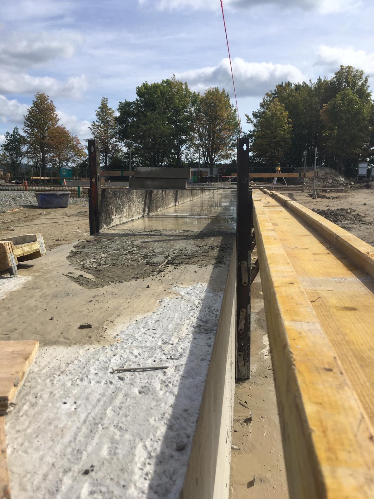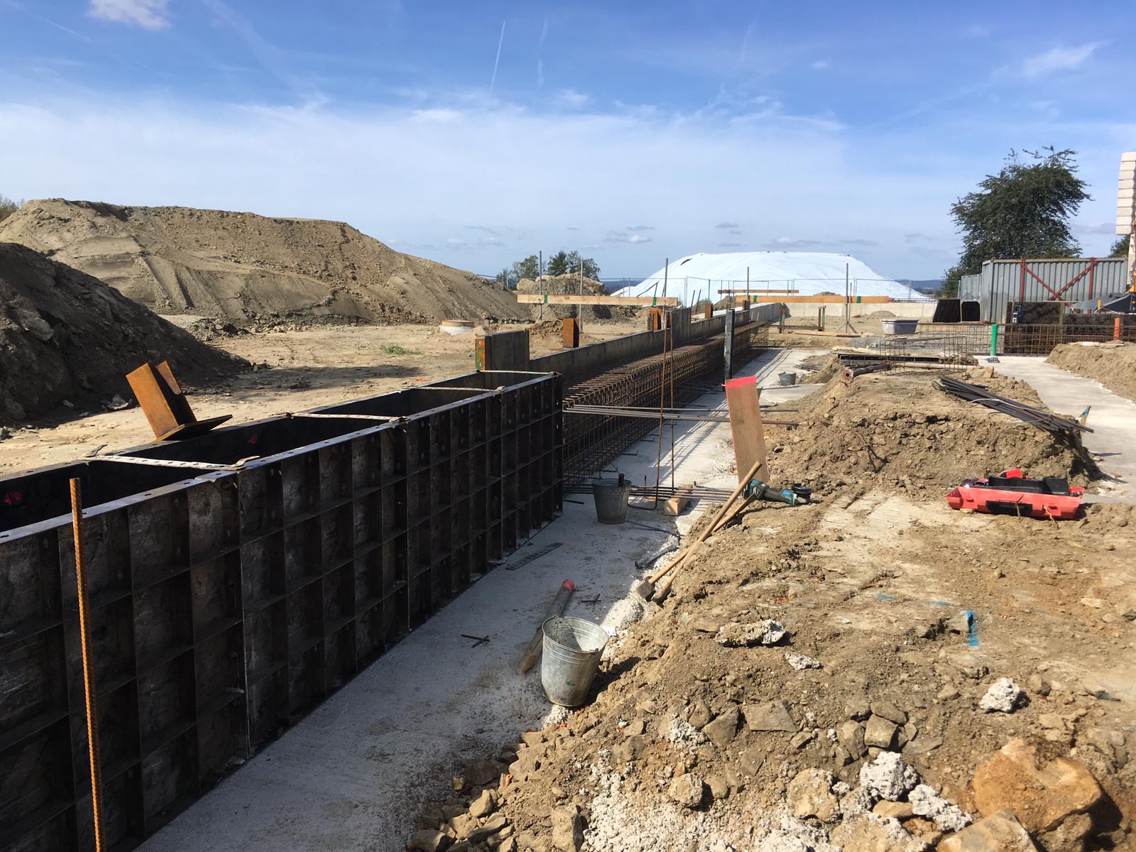 ➡️ Mit der Bodenplatte in der Fahrzeughalle wurde begonnen.