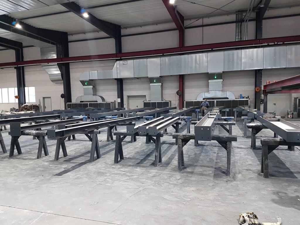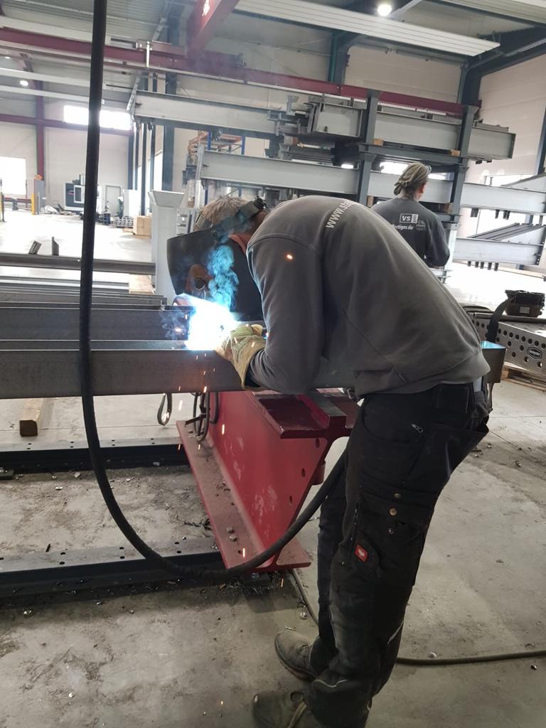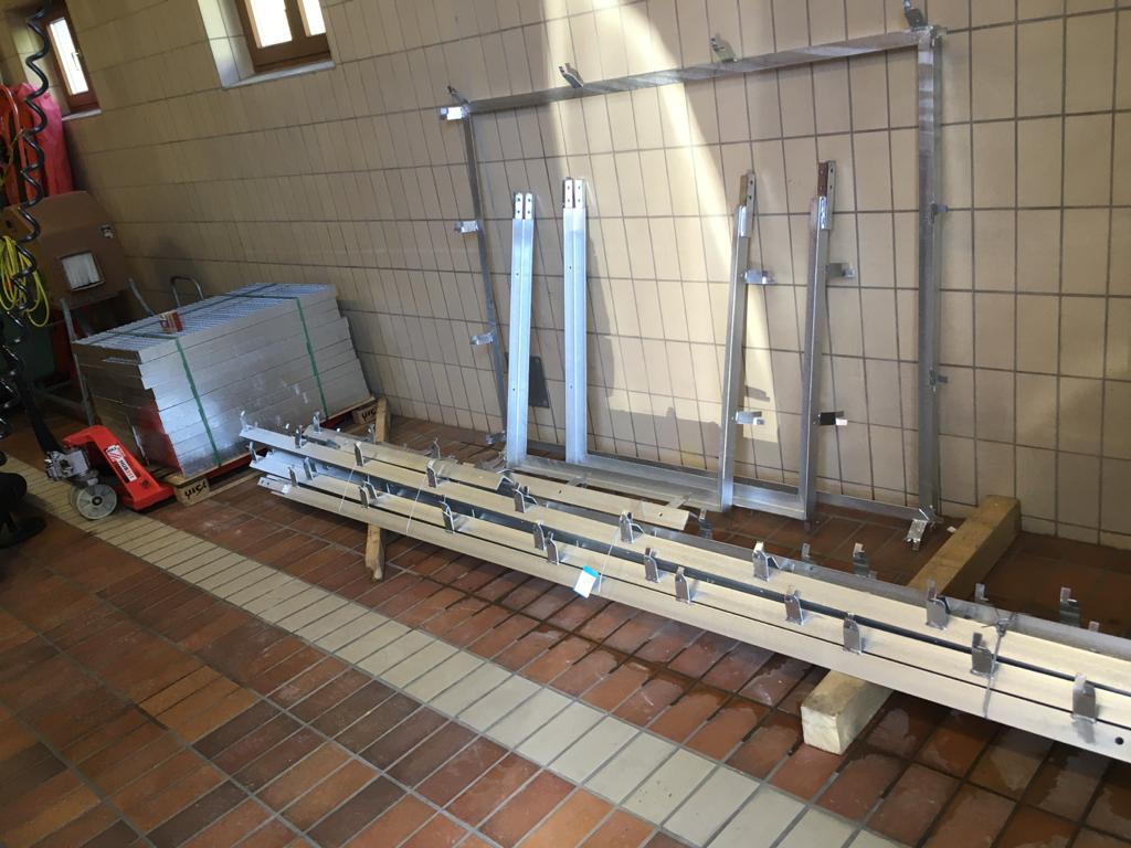 ➡️ In Eigenleistung wurden verschiedene Eisenteile für die Fahrzeughalle (hier für die Grube) zusammengebaut.