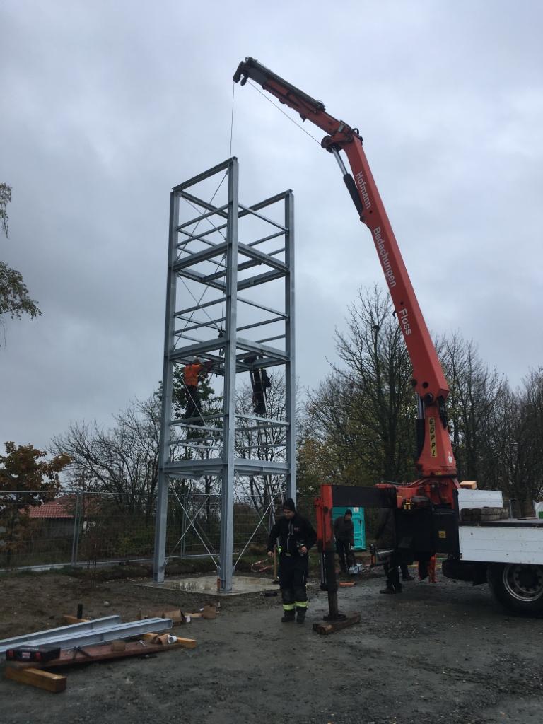 In dieser Woche gibt es sichtbare Veränderungen auf der 🚧 Baustelle. Gemeinsam mit der Fa. Hofmann haben wir unseren ♟Übungsturm aufgestellt. Außerdem sind alle Teile der Halle nun fertig lackiert, am Montag wird mit dem Aufstellen dann begonnen. Unser Dank gilt nochmals der Fa. Voit Stefan GmbH, die uns die Stahlarbeiten so reibungslos ermöglichte.