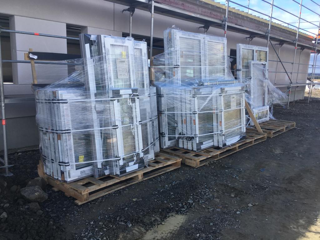 Die Türen sind gesetzt! Zunächst wurde in dieser Woche fleißig im Inneren weitergearbeitet (z. B. wurden die Küche und die Sanitärräume gefliest), ehe sich dann auch vor dem Haus wieder sichtlich was bewegte. Der Vorplatz wird komplett geebnet, sodass mit den Außenanlagen begonnen werden kann. Heute wurden dann noch die Seiteneingangstüren in Fahrzeughalle und Sozialtrakt gesetzt. Lediglich der Haupteingang lässt noch ein bisschen auf sich warten 😜.