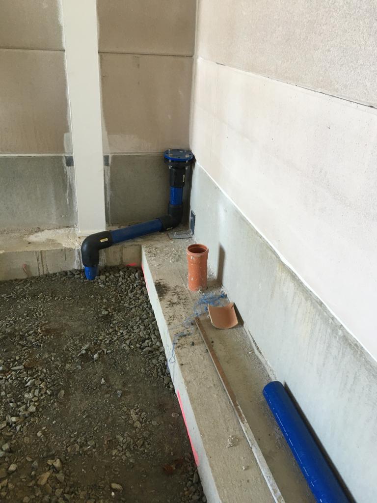 Wieder ein ordentliches Stück näher dran! In der Fahrzeughalle wurden letzte Woche die Absauganlage und Wandhydranten installiert, auch mit dem Verlegen der Wassserleitungen wurde begonnen. Im Sozialtrakt stehen wir kurz vor den Arbeiten am Estrich.