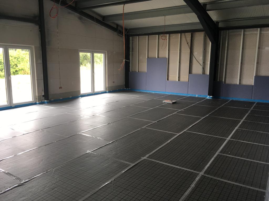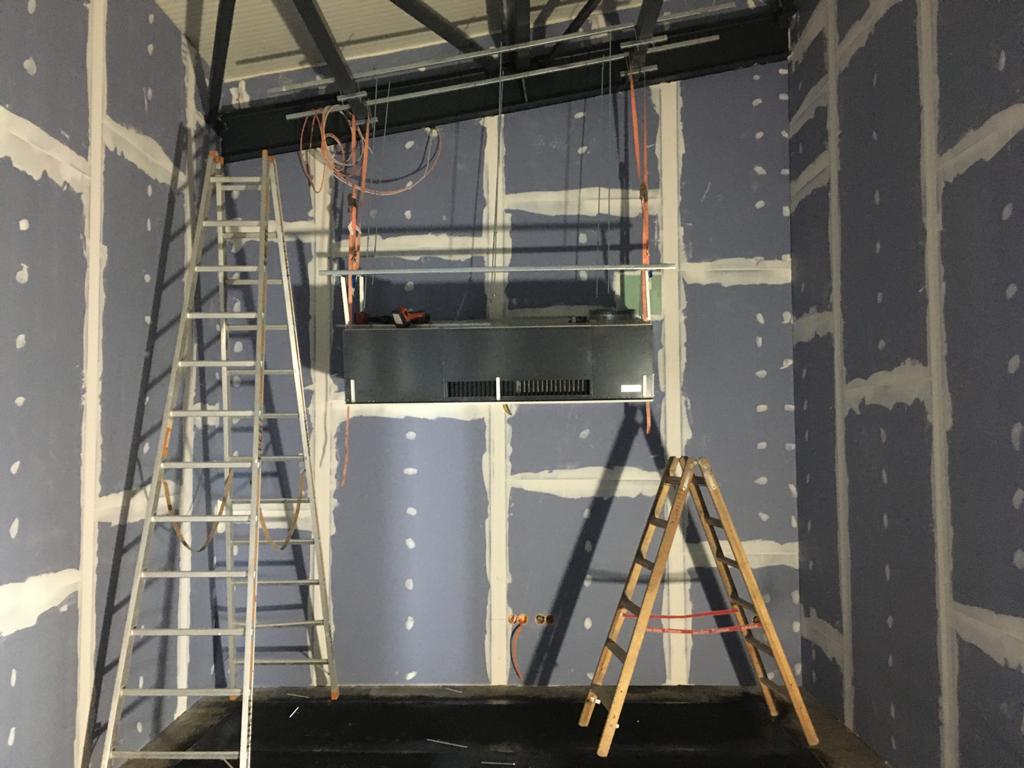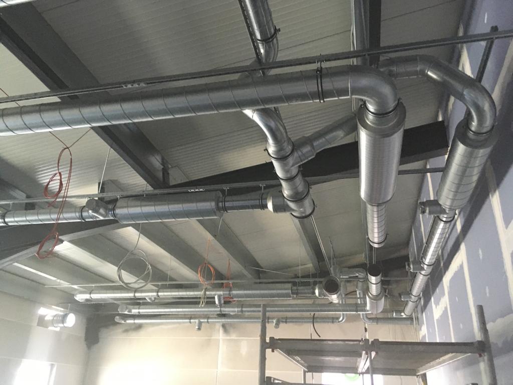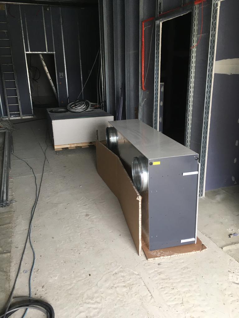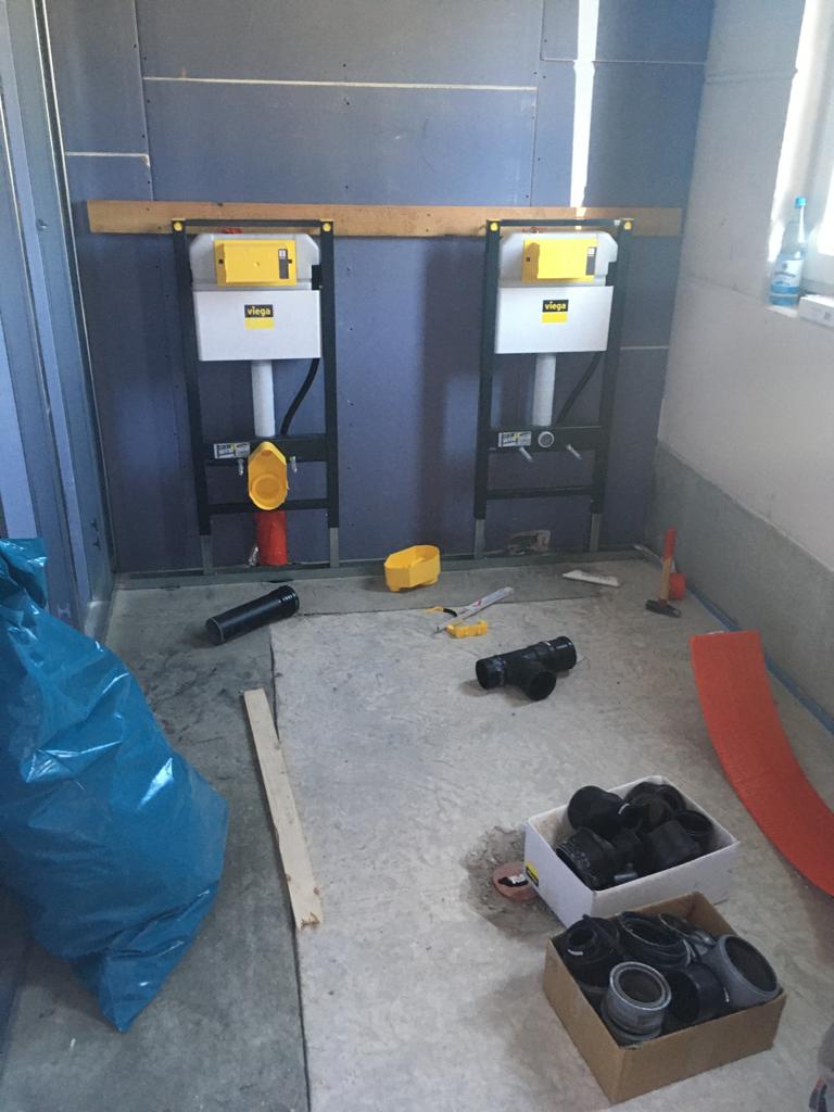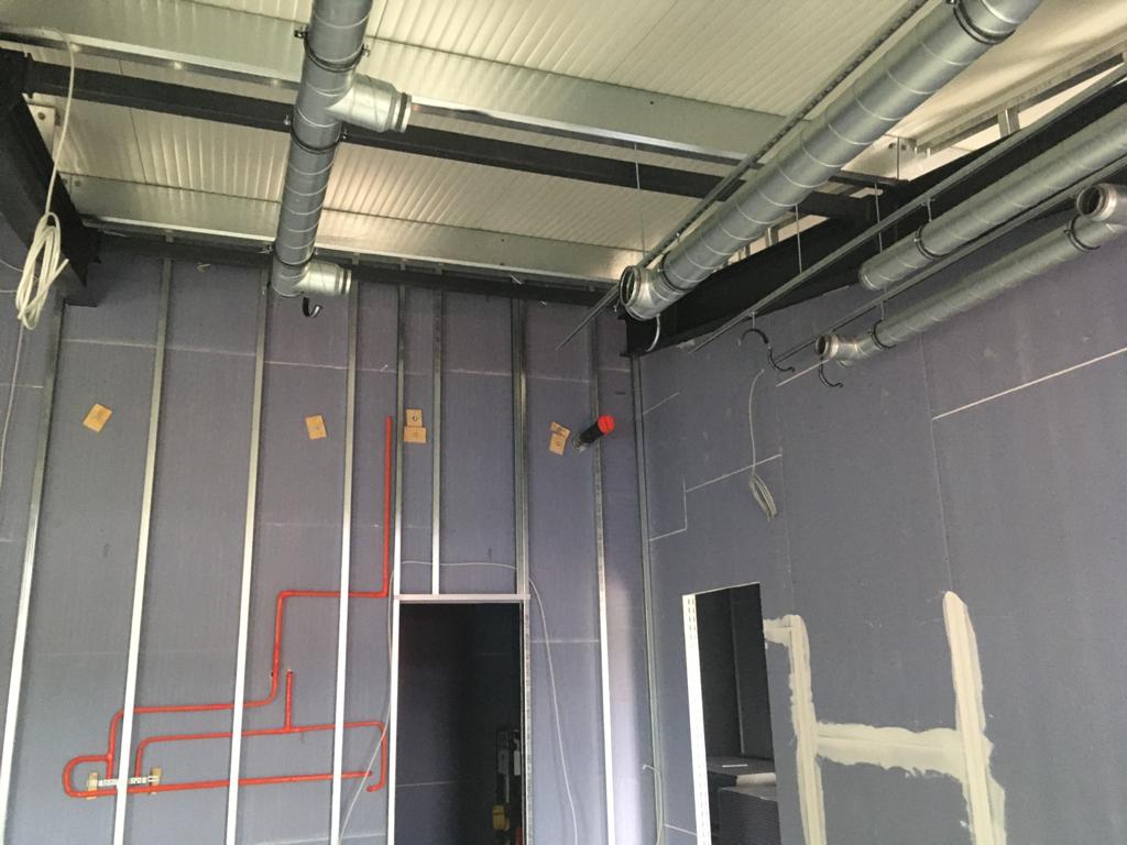 Weiter geht's! Die Lüftung in den Umkleiden und Toilettenräumen stehen kurz vor der Fertigstellung, Die Trockenbauarbeiten befinden sich auch bereits in den letzten Zügen. Im Sozialtrakt wurden die Schweißbahnen verlegt, nächste Woche beginnen hier die Arbeiten an der Fußbodenheizung.