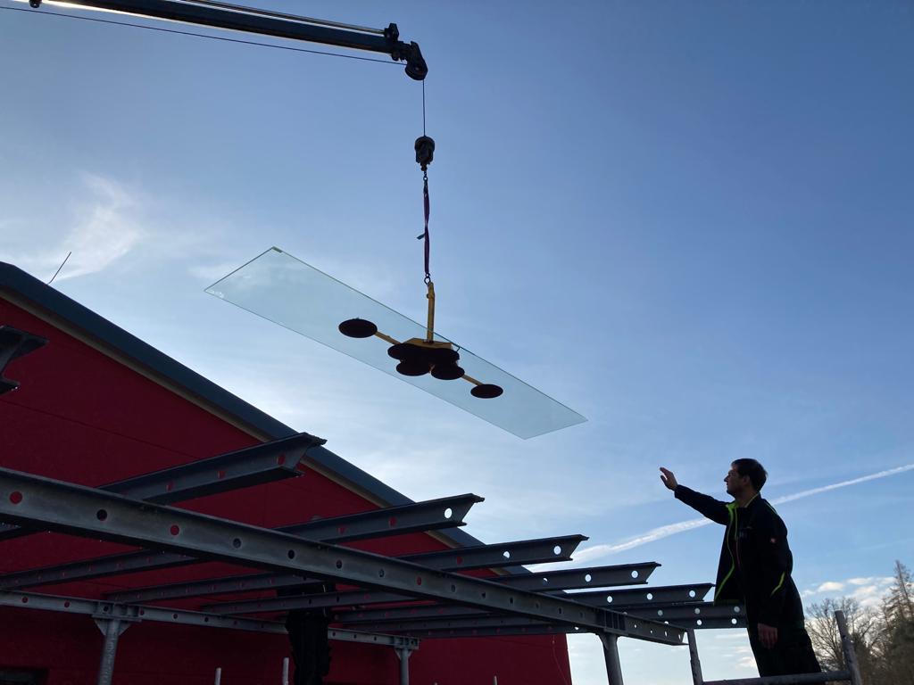 1. Die Firma Natur Energietechnik hat die Solaranlage für die ZENO Energiegenossenschaft auf unserem Dach fertiggestellt. 2. Die ersten Rolltore wurden verbaut. 3. Die Türen und Lüftungskanäle wurden geschlossen und die Fernwärmeleitung wurde vergraben. Vielen Dank dafür an den Bauhof unseres Marktes. 4. Die Wasserleitungen im Gebäude wurden verlegt.